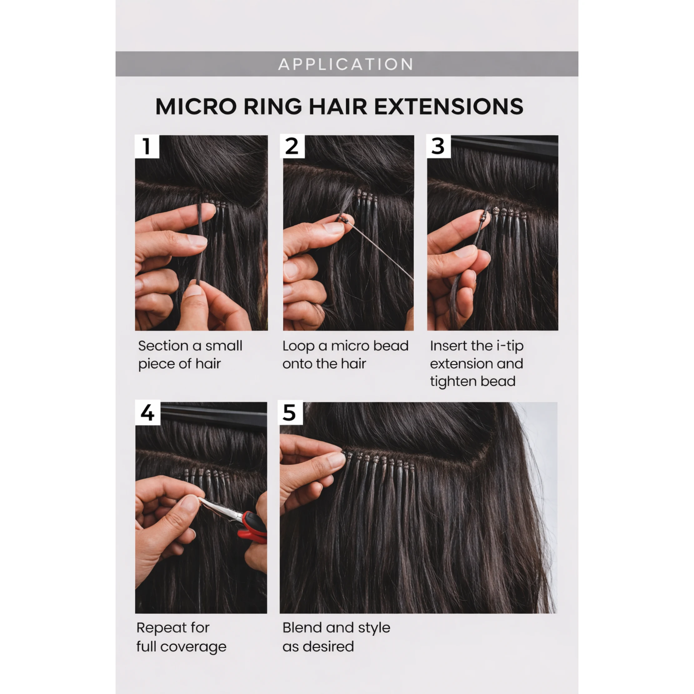 Each strand is pre-tipped and applied using tiny, discreet micro rings, eliminating the need for glue, tape, or heat. This makes them a safer and less damaging option compared to traditional extension methods. The strand-by-strand application allows for natural movement, flexibility in styling, and a lightweight feel that remains comfortable throughout the day.